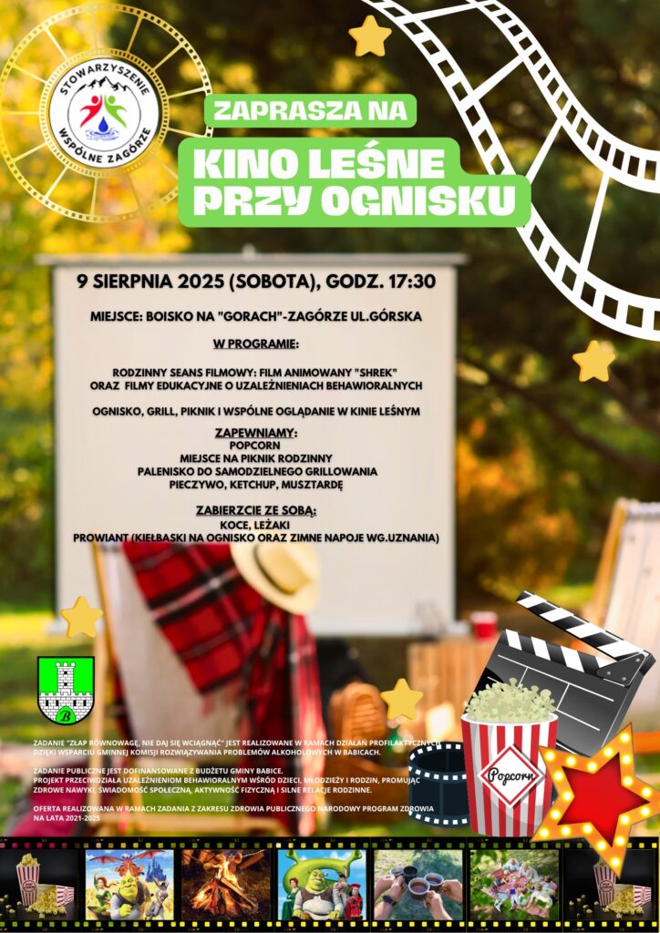 💚 DZIĘKUJEMY! 💚 było pełno uśmiechów, rozmów i wspólnych chwil. 🌟 Oprócz zabawy przy dmuchańcu, lodach, popcornie i ognisku, mogliśmy razem obejrzeć filmy behawioralne, które poruszyły ważne tematy i skłoniły do refleksji. 🎥 A na finał – niezawodny „Shrek” 🎬, który rozbawił małych i dużych! Dziękujemy, że tworzycie z nami ten wyjątkowy klimat i do zobaczenia na kolejnych wydarzeniach! Wydarzenie zostało zrealizowane w ramach projektu profilaktyczno-edukacyjnego „Złap równowagę – nie daj się wciągnąć”, którego celem jest przeciwdziałanie uzależnieniom behawioralnym wśród dzieci, młodzieży i rodzin. Projekt promuje zdrowy styl życia, aktywność fizyczną oraz budowanie silnych więzi rodzinnych. Działania są finansowane z budżetu Gminy Babice i wspierane przez Gminną Komisję Rozwiązywania Problemów Alkoholowych.